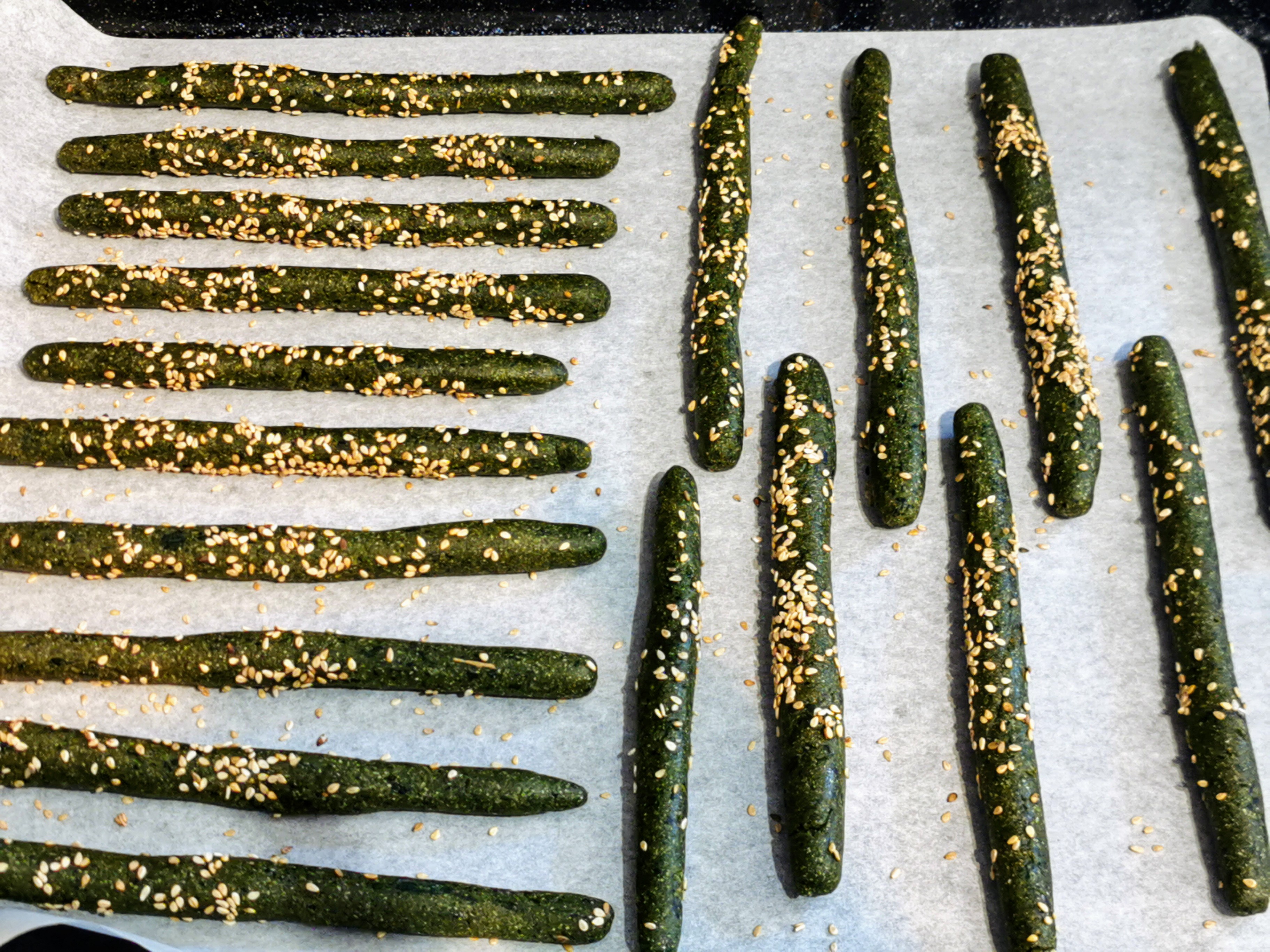 - Passare i grissini in una ciotola dove hai messo i semi di sesamo e stenderli su una teglia ricoperta con la carta da forno.